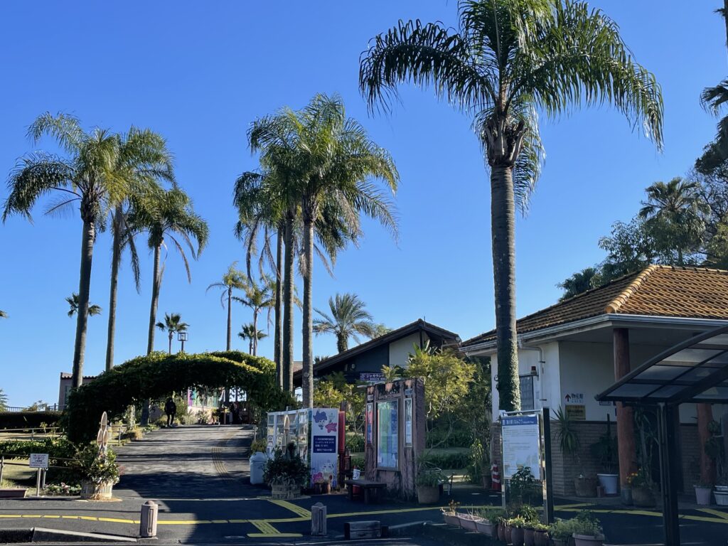 遠目には海や小島を望みます。道の駅裏手側には、トロピカルドームという施設が足、温室内の植物を鑑賞することができます。
