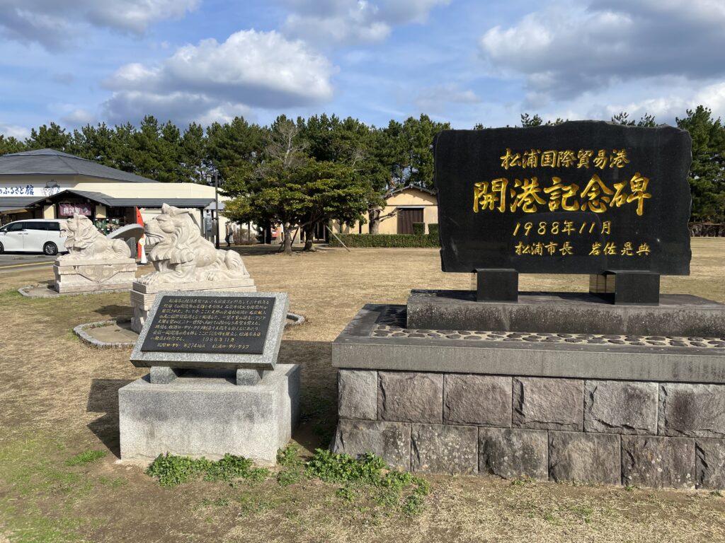 駐車場の横には、松浦国際貿易港開港記念碑がありました。