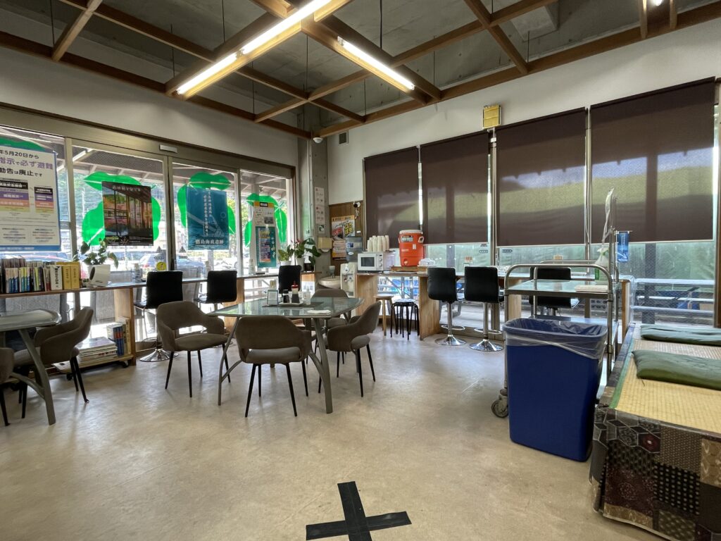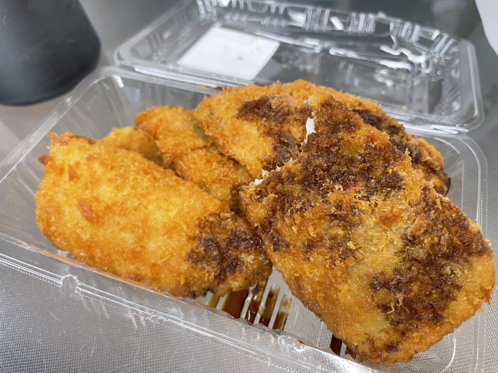 代わりに、出来立てのアジフライを購入できたので、休みの食堂が解放されていたので、そこで頂きました。